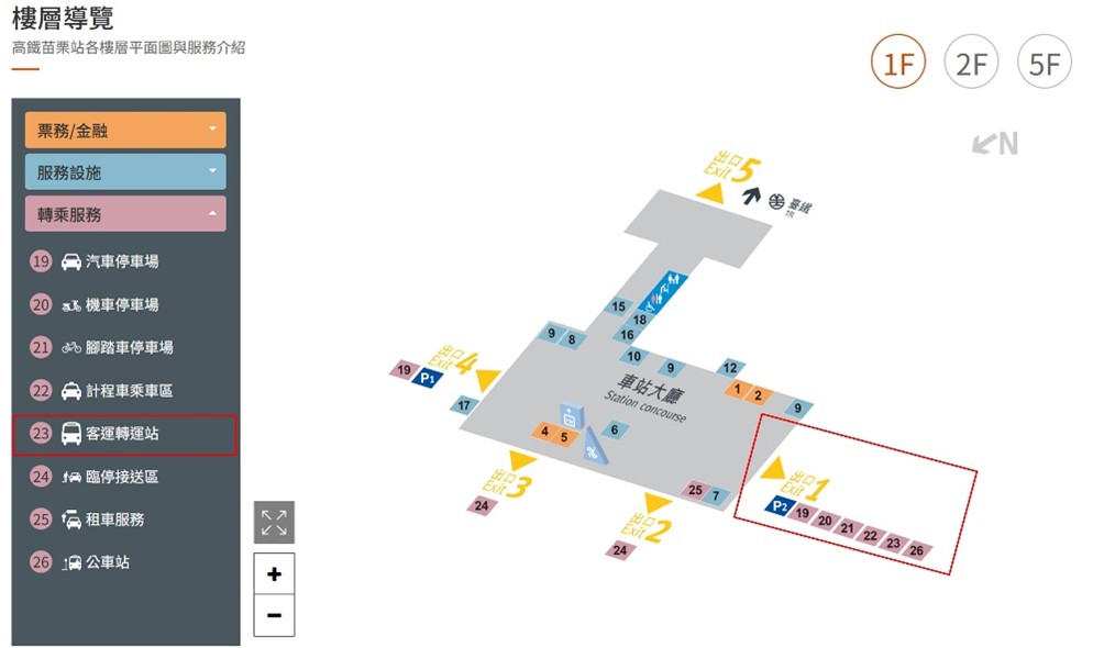 請由 出口 1 前往 客運轉運站 (#23) 等候接駁車,詳見下圖。